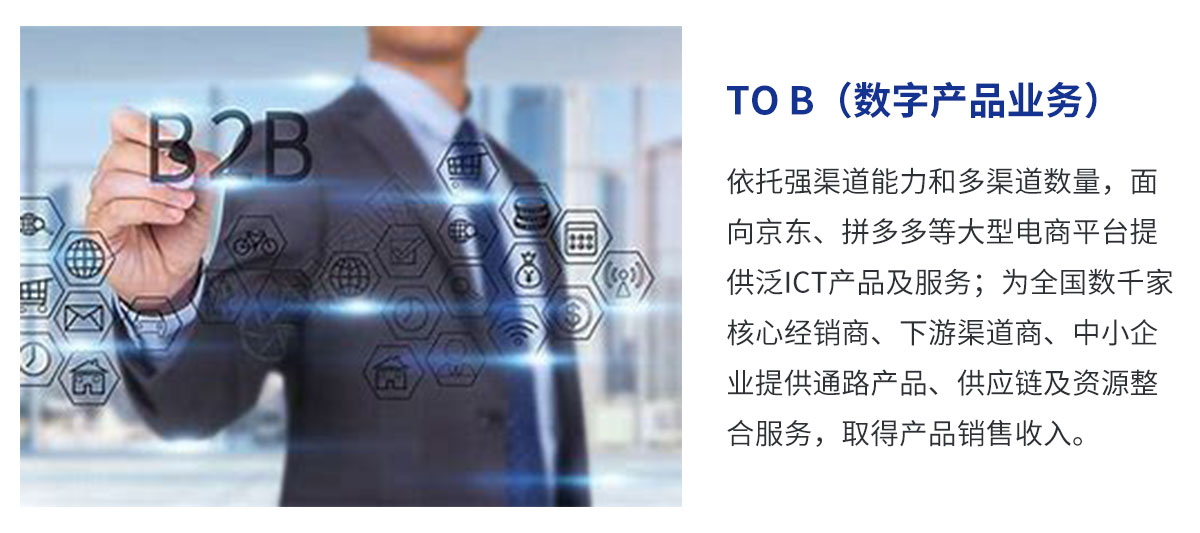 以云計算設備為主,面向京東、天貓等大型電商平臺提供泛ICT產品及服務,為全國數千家核心經銷商、下游渠道商、中小企業提供通路產品。